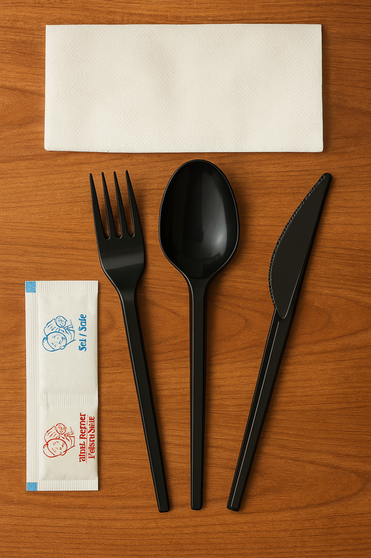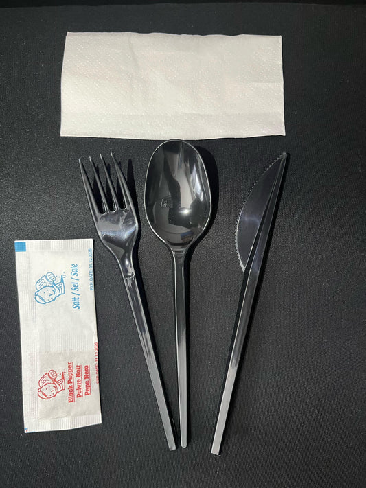 Set PP i Zi – Pirun, Thikë, Lugë, Fasoletë, Kripë & Piper